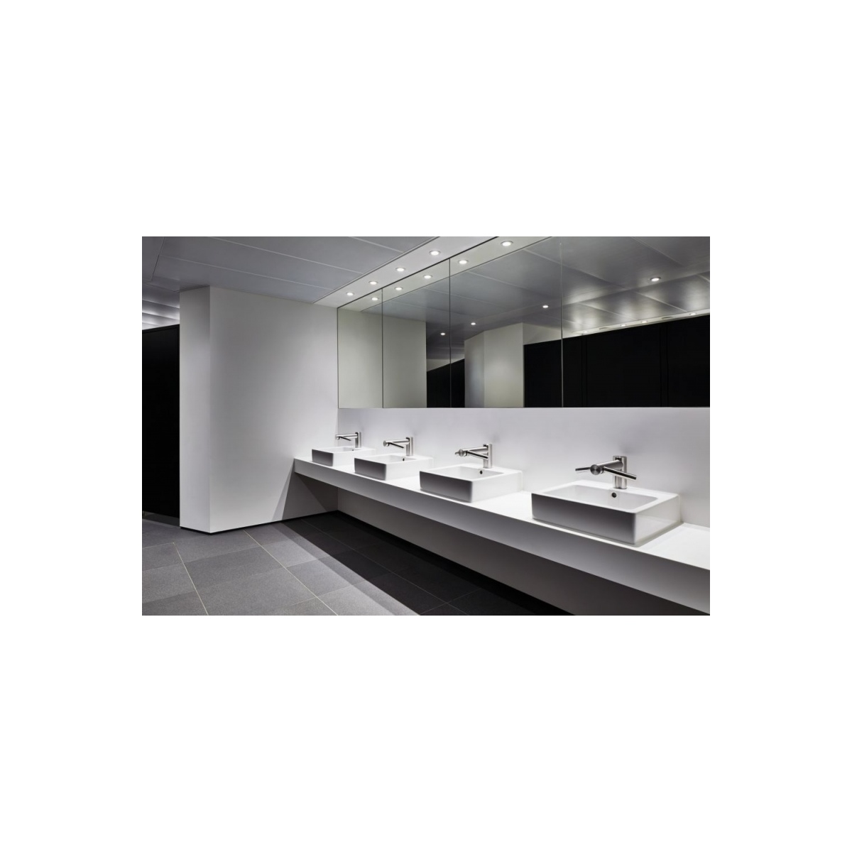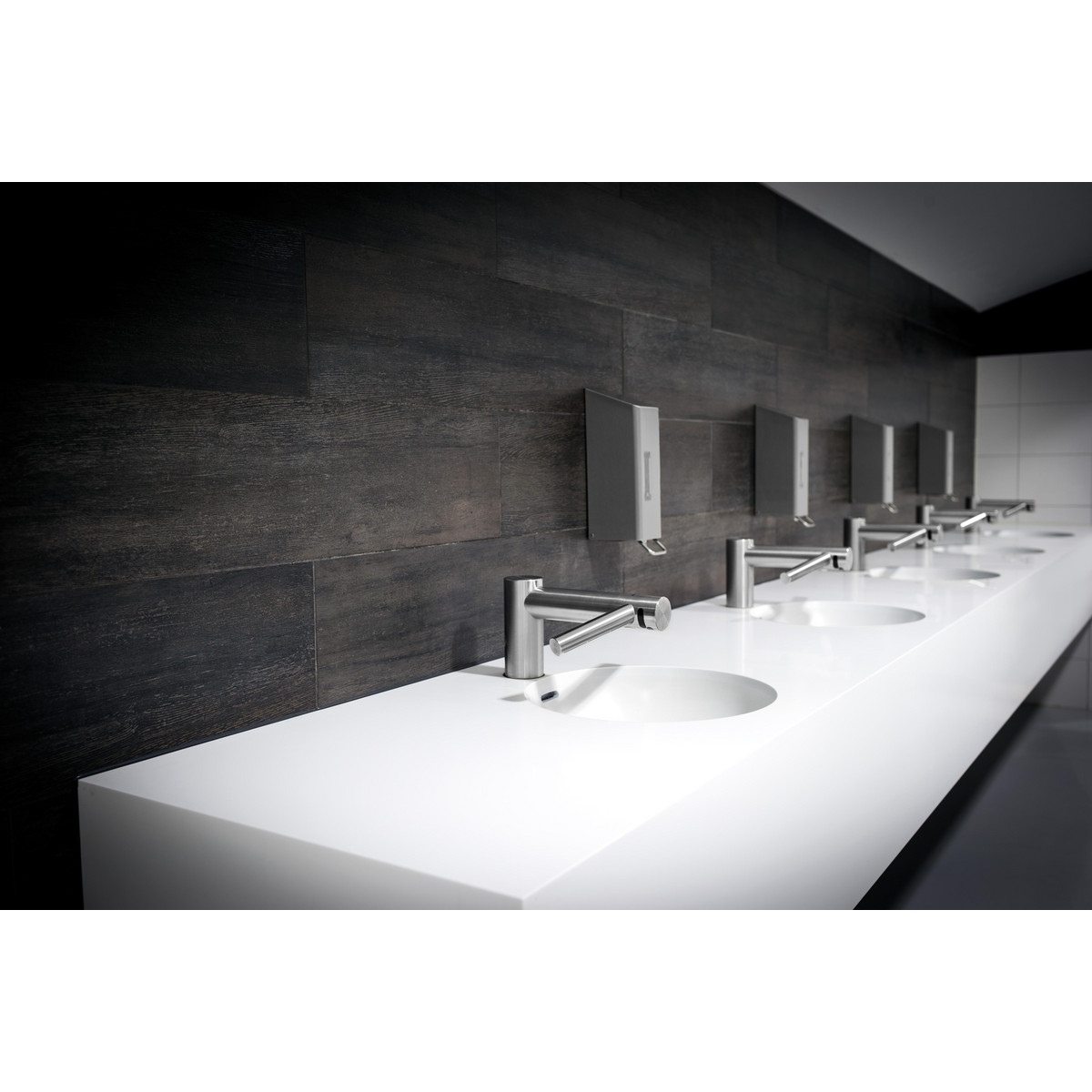 Нет необходимости переходить в отдельную зону, чтобы высушить руки. Вся вода останется в раковине.
